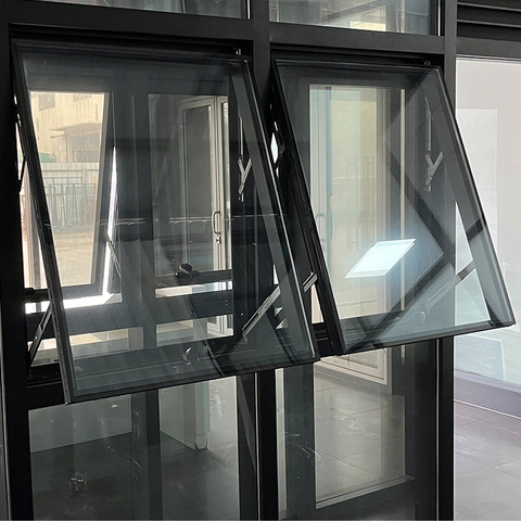 Nfrc Gecertificeerde Thermische Onderbreking Aluminium Energie Ster Drievoudige Ruit Gehard Glazen Luifelraam Met Slingdeur En Vast Raam
