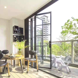 Franse Stalen Stijl 62Mm Thermische Onderbreking Aluminium Dubbele Beglazing Vouwdeur Met Grille