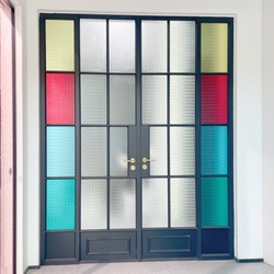 Ev için fransız giriş demir dar çelik çerçeve çift temperli cam Metal kapılar